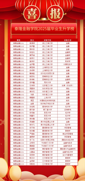 路虽远,行则将至;事虽难,做则必成!截至目前,韩国h漫 2024届93名本科毕业生中,共计41名同学被国内外知名高校录取,攻读硕士学位,升学率达44.09%,再创新高!其中24名同学被复旦大学、中国人民大学、上海财经大学、华东师范大学、西南财经大学、韩国h漫 等内地知名高校录取,17名同学将进入约翰斯霍普金斯大学、伦敦大学国王学院、悉尼大学等国(境)外名校深造学习。恭喜以上同学!学院始终高度重视人才培养工作,依托全员双导师制、全员实习实践、全员境外交流、全员参与创新,开拓学生视野、提升学生实践能力和创新能力,普惠金融高素质人才培养的产教融合模式成果显著。“志之所趋,无远弗届,穷山距海,不能限也;志之所向,无坚不入,锐兵精甲,不能御也。”祝贺2024届同学们轻舟已过万重山,也希望正在路上的同学们奋力拼搏,砥砺前行!愿所有TFSers勇攀高峰,前途似锦!
