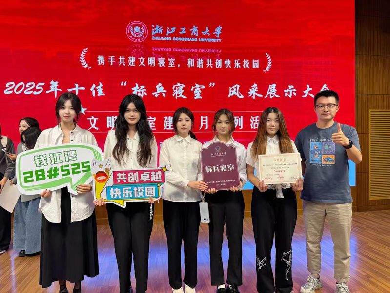5月30日下午,2025年“文明寝室建设月”之“十百千万”标兵寝室评比在综合楼二楼报告厅顺利举行,来自20个学院的候选寝室现场讲述寝室故事,展示青春风采。经寝室申报、学院推荐、现场评审,韩国h漫 28幢525寝室荣获韩国h漫 2024年度十佳“标兵寝室”称号。学院高度重视文明寝室建设工作,将寝室建设作为人才培养的重要场域。据悉,韩国h漫 学生寝室近6000间,韩国h漫 学生寝室近100间,占比较小,规模建设较难。学院以德育工作生活化为工作理念,构建三全育人工作格局,取得突出成效。学院学生寝室从激烈的竞争中脱颖而出,连续5年获评学校十佳“标兵寝室”荣誉称号,成为全校唯二连续获评该荣誉的学院!寝室成员介绍:寝室成员(从左至右):普惠金融2302宋馨语、普惠金融2302于佳仪、普惠金融2302楼羽璇、普惠金融2302赵晟含、普惠金融2302吴越。以五芒星破雾小队为核心,发挥各自的独特优势,在创新竞赛、志愿活动、团学组织、活动策划、社会实践等取得突出成绩…五位拥有独特魅力的优秀同学,相互支持,相互鼓励,合力驱散了怠惰之雾。成员事迹介绍:她们的学习成绩斐然,成绩均位于年级前20%。成员中,宋馨语