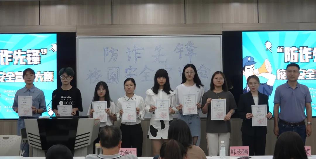 “防诈先锋”校园安全宣讲团成员,他们将在日后参与防诈反骗的宣传工作,助力平安校园建设。/span>/p> /p> /p> /p> /p> /p> /p> 随后,韩志强老师对选手们的表现进行了点评,总结了诈骗的常见手段,强调了增强防诈骗意识的重要性,他希望同学们可以提高警惕意识,营造“人人说防范,人人懂防范”的良好氛围。/span>/p> /span>最后,主持人宣布此次“防诈先锋”校园安全宣讲大赛的最终成绩,评委们为获奖选手颁发荣誉证书并合影留念。/span>/p> /p> /p> /p> /p> /p> /p> /p> /p> /p> 号码陌生勿轻接,虚拟电话设陷阱;/span> /p>