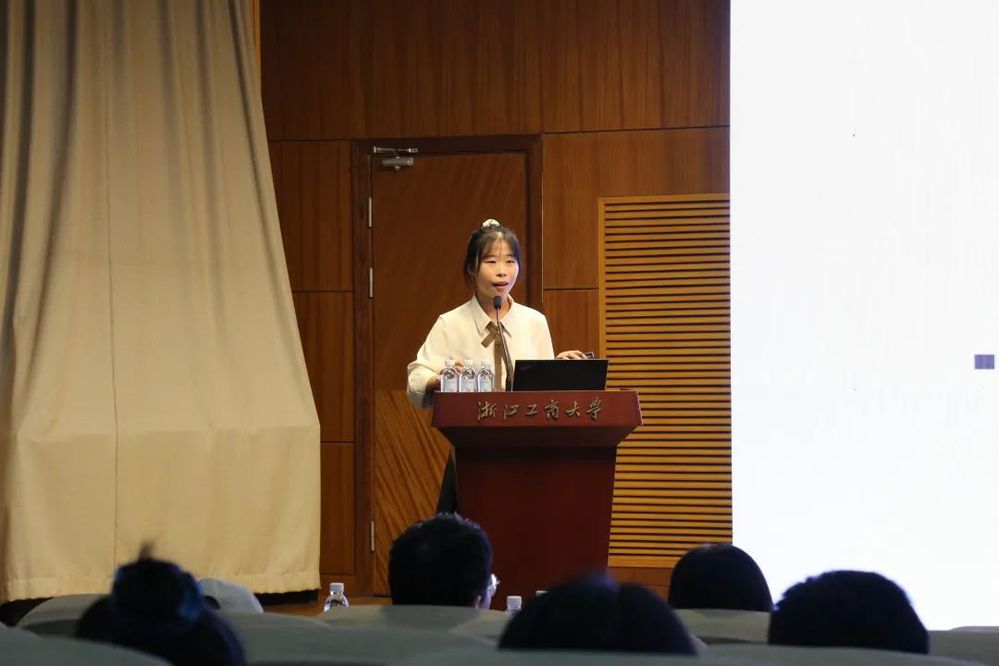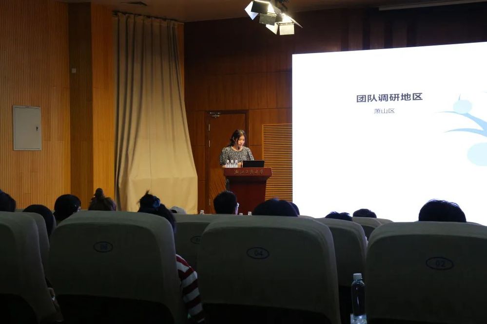 余杭区访员代表吴淑琪、淳安县访员代表陈乐舒以及萧山区访员代表耿如如分别进行了实践心得分享,他们展示了自己的调查成果,分享了实践的经验和探访的心路历程,不论是被拒访的心酸、组员互助的温馨,还是对优秀队员的赞赏都在他们的言语中呈现。这些分享让这次调查活动的“酸甜苦辣”重新展现在师生面前,大家感悟颇多。