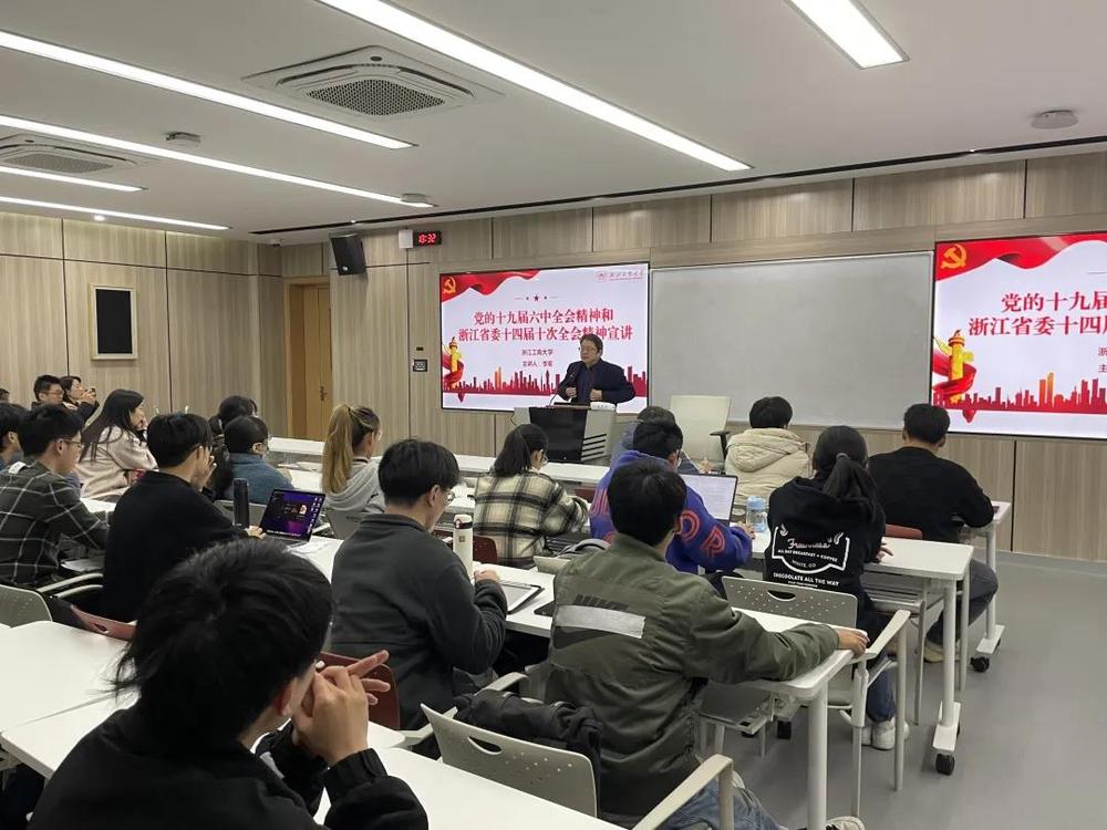 校党委副书记李军为学院师生宣讲十九届六中全会精神和浙江省委第十四届十次全会精神