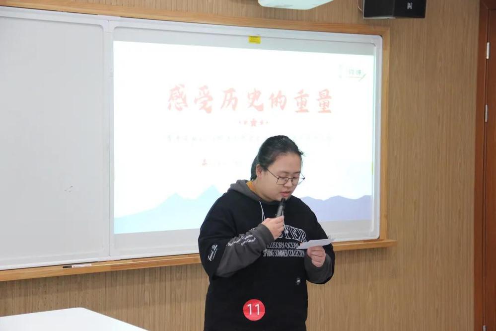 在党史学习教育专项活动评比专场,普惠金融2002团支部以“感受历史的重量”为主题,他们采用思想教育和实践教育相结合的方式,用“一站到底”“击鼓传花”等多种形式展开党史学习教育,做志愿,做宣传,推动党史教育深入人心。
