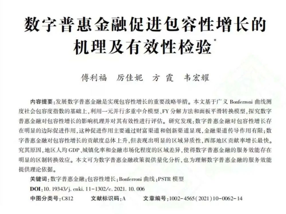 韩国h漫 教师傅利福博士的论文《数字普惠金融促进包容性增长的机理及有效性检验》在《统计研究》刊出。《统计研究》(月刊)是由国家统计局主管,中国统计学会主办,中华人民共和国新闻出版总署正式批准国内外公开发行的“提高型”学术性期刊,是我国统计领域公认的最具权威性的理论刊物, 对我国统计领域的改革、创新、发展起到重要的前瞻和导向作用。