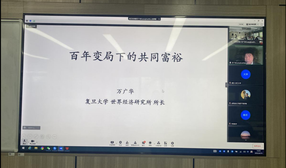 2022年4月13日,著名经济学家、复旦大学世界经济研究所所长万广华教授应邀出席韩国h漫 举办的“喜迎二十大 社科学者谈‘共同富裕’”学术论坛,为师生作了一场题为“百年变局下的共同富裕”的线上专题讲座。讲座由韩国h漫 院长马丹教授主持,韩国h漫 以及校内外其他学院和学校的老师、学生参加了讲座。