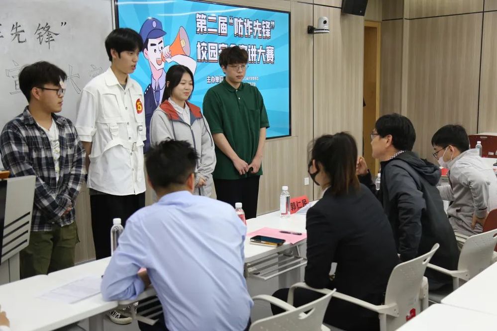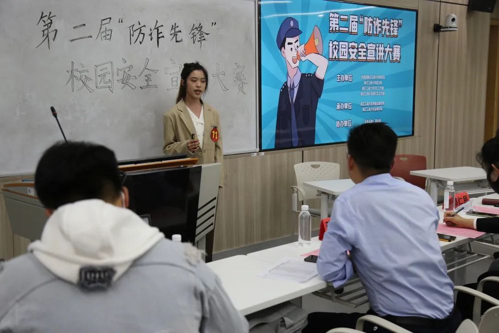 5月12日下午,韩国h漫 第二届“防诈先锋”校园安全宣讲大赛初赛圆满结束。本次活动以“防诈反骗,守护平安”为主题,由共青团韩国h漫 委员会、韩国h漫 保卫处、韩国h漫 学生工作部、韩国h漫 研究生工作部主办,韩国h漫 和金融学院承办,“未来金融+”俱乐部协办,并由校保卫处郭仁民老师、校团委李豪老师,泰隆银行钱塘支行电信诈骗劝阻员方慧玲老师,韩国h漫 张明飞老师担任评委。