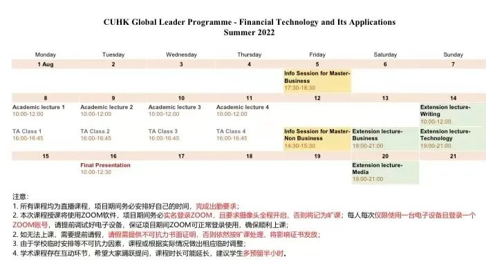 2022年8月16日,香港中文大学在线学术课程——金融科技与其商业应用正式结课,该课程是由香港中文大学官方主办,由官方教学课程、助教课程辅导、拓展课程、港中大申请分享会、路演展示组成,主要探讨银行业、风险投资和保险业的颠覆性商业模式,以及它们如何重塑金融加密货币、区块链、人工智能和监管改革。