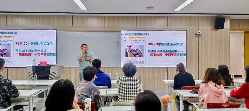 郑云华老师强调了社会实践的重要性和必要性,他结合历年来指导的社会实践,向同学们分享了实践的四个重要方面:主题、方案、宣传、资源。其中特别强调了宣传的重要性,包括宣传报道的写法、图片、时间等内容。