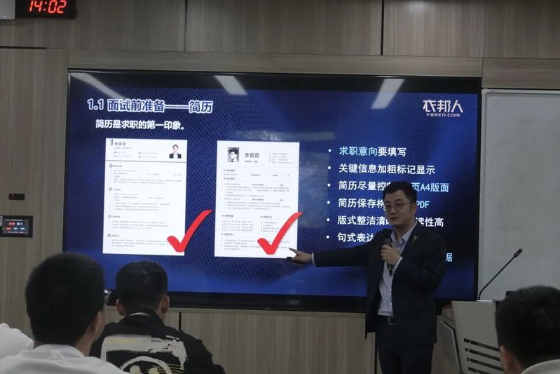 黄烨总监以“外化于形,内化于心”为主题,围绕面试着装、职场礼仪和职业规划等方面进行了讲解。他提到简历是求职的第一印象,并对简历制作给出了详细的培训指导。黄烨总监还分享了很多面试经历和经验,他总结应聘者需要尽可能多地传递信息,让面试官更好地做出判断。