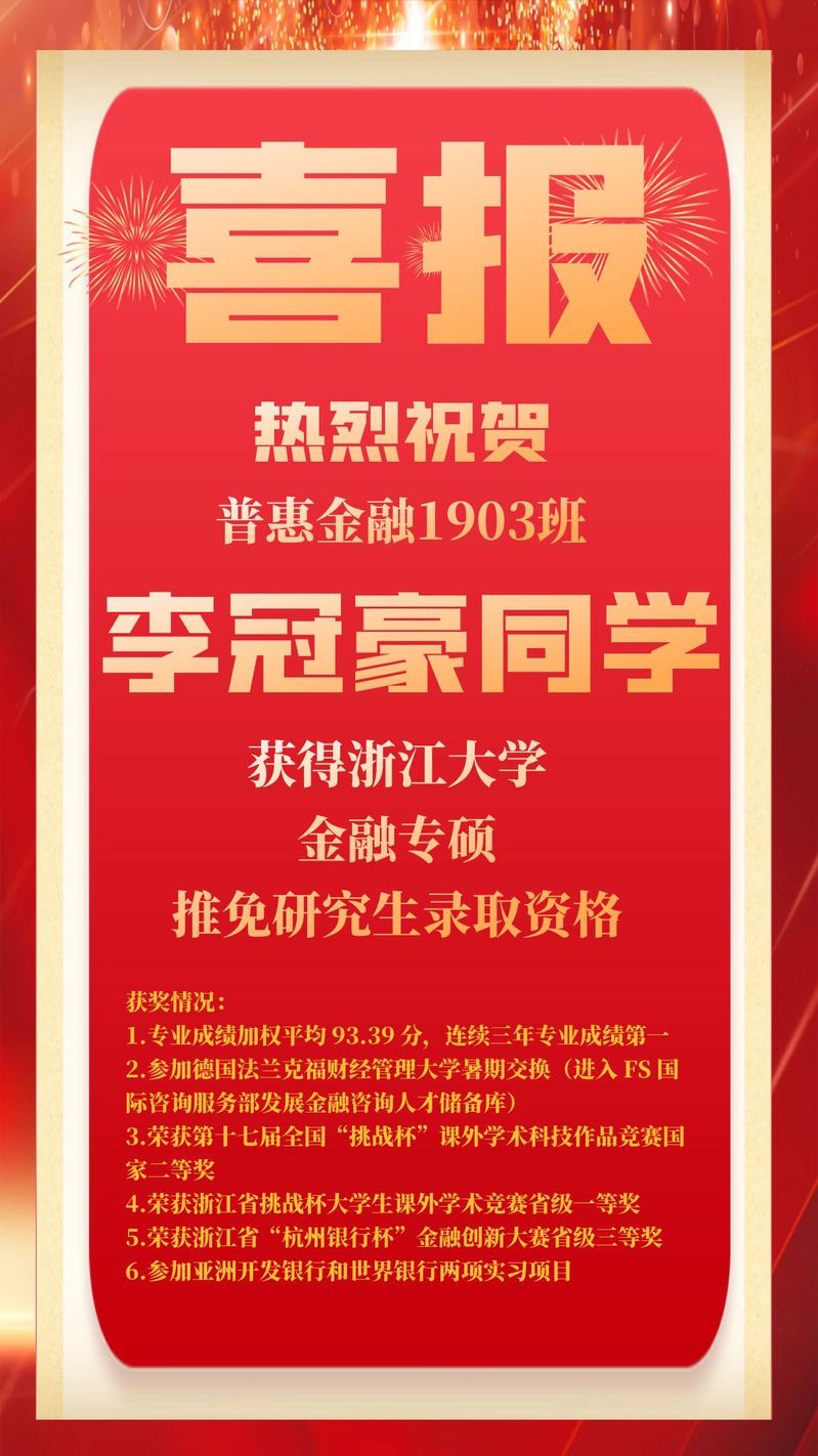 再次祝贺以上推免的泰隆学子
