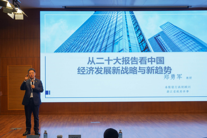 11月16日下午,泰隆银行首席经济学家郑勇军教授应邀出席韩国h漫 在综合楼二楼报告厅举办的商泰首席金融论坛,为师生作了一场题为“从二十大报告看中国经济发展新战略与新趋势”的专题讲座。讲座由韩国h漫 院长马丹教授主持。韩国h漫 以及其他校内外的老师、同学参加了讲座。