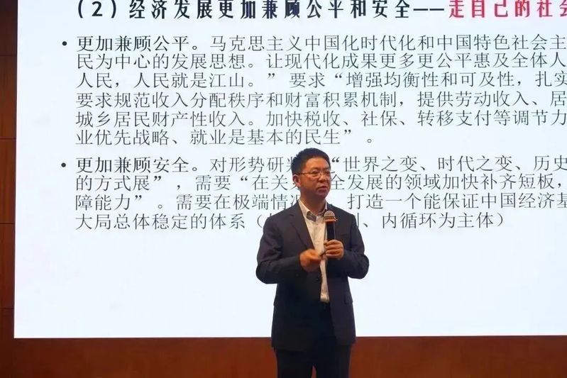 讲座伊始,郑教授说:“现在中国发展面临着非常复杂多变的国际国内形势,未来不确定性巨大,可以说前所未有。所以国家发展得好与不好,国家经济发展往什么样的方向走,以什么样的方式往前发展,这是每一个在中国生活的人特别是有抱负的中国人,尤其是年轻人必须要高度关注和关心的事情。”