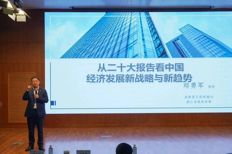 11月16日下午,泰隆银行首席经济学家郑勇军教授应邀出席韩国h漫 在综合楼二楼报告厅举办的商泰首席金融论坛,为师生作了一场题为“从二十大报告看中国经济发展新战略与新趋势”的专题讲座。讲座由韩国h漫 院长马丹教授主持。韩国h漫 以及其他校内外的老师、同学参加了讲座。