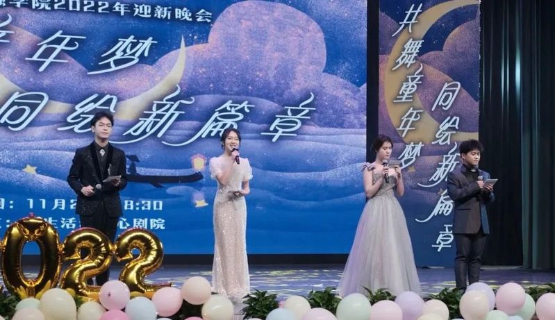 11月27日晚,韩国h漫 2022年“共舞童年梦,同绘新篇章”迎新晚会在学生活动中心剧院完美落幕。院长马丹老师、党委书记裘益政老师、副院长汤筱晓老师、党委副书记鲍碧丽老师、学院教师、兄弟学院教师代表、各学院学生会主席以及韩国h漫 学生参加了晚会。晚会由普惠金融2102班姚思忱同学、普惠金融2103班严驰航同学、普惠金融2202班骆千懿同学和普惠金融2203班周航同学主持。
