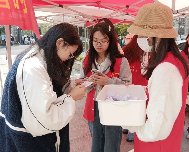 当前诈骗活动猖獗、诈骗案件频发,为增加同学们的金融安全意识,提高对诈骗的识别能力,3月15日下午韩国h漫 青年志愿者协会在流水广场开展了“情系雷锋月,防诈正当时”志愿服务活动。