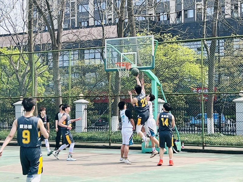 4月1日,学院杯男篮比赛在南场进行。球员们运球过人迅若奔雷,妙传助攻心有灵犀。他们在球场上奔跑着,运筹帷幄,球在两方球员间传送着,只见一人一飞快的上步,向上一跃,球网往上一抛,球进了!边上传来了一大阵欢呼。一会儿又是一个投篮,可惜球撞上篮筐,被弹了出来,双方对峙着如此往复。