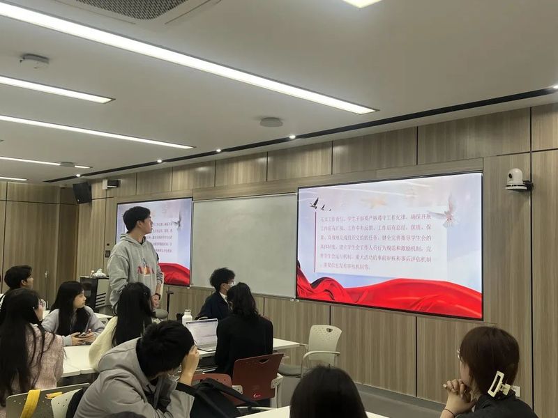 为此,2023年4月14日晚,韩国h漫 学生会在经济楼315教室开展春季学期高校学生会工作人员培训,以党的二十大精神为重点,突出服务同学宗旨教育和纪律作风教育。