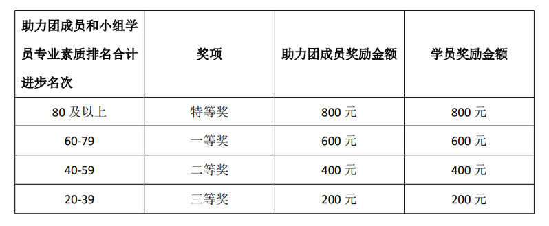 (3)助力团成员和小组学员专业素质合计排名较上学期合计排名上升20名及以上者。