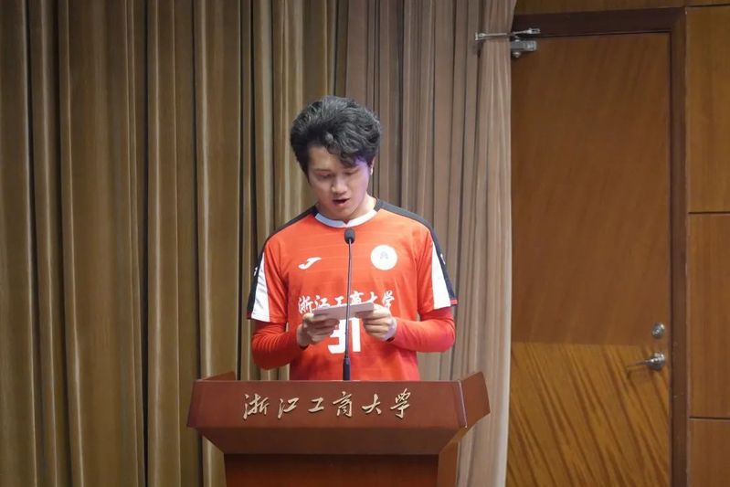 第六个展示的是文体之星候选人胡昊鸣。胡同学对所从事的文体活动具有浓厚的兴趣,并对其持续追求和专注,三年期间,他取得了许多成果:作为主力队员获得2021年浙江省青少年校园足球联赛大学男子组第七名;获2020年新生杯田径比赛男子跳远第二名;在韩国h漫 第39届田径运动会男子跳远中获得第四名;作为主力队员在2020年韩国h漫 新生杯男子足球亚军;作为主力队员在2021年韩国h漫 新生杯八人制足球赛四强。