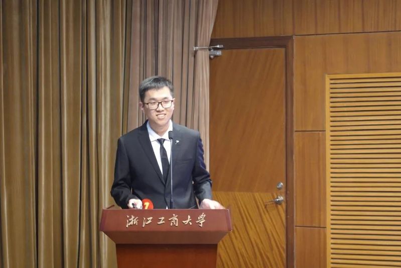 接下来进行展示的是学习之星候选人张人捷同学。他也为我们展示了四年间获得的荣誉:如作为总分第一考取华东师范大学保险专硕;荣获浙江省优秀毕业生,在《SYSTEMS》期刊公开发表一篇学术论文,被SSCI收录;开展国家级大学生创新创业优秀结题项目;在第十四届全国大学生数学竞赛(非数学类)浙江赛区获一等奖(全校第三)。