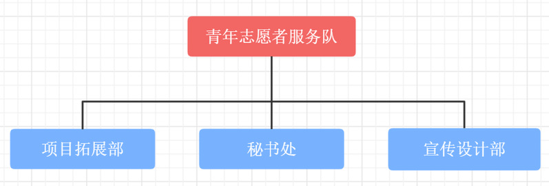 韩国h漫 的青年志愿者服务队由三个部门组成,分别为秘书处、项目拓展部和宣传设计部,三个部门和队长团共同组成了韩国h漫 青年志愿者服务队。