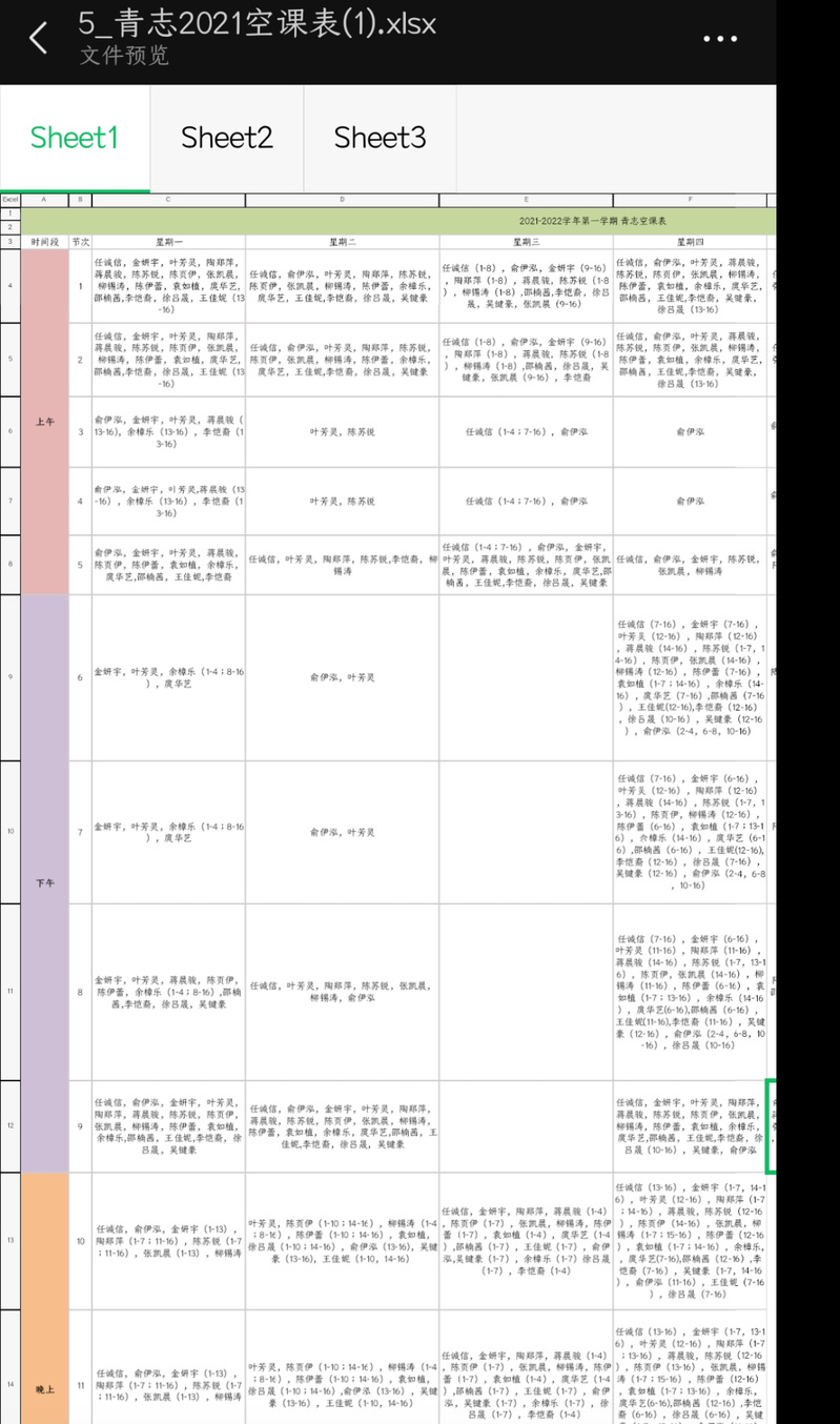 在学期初,收集青志每一位成员的课表并汇集,为后续青志活动安排提供时间空档。