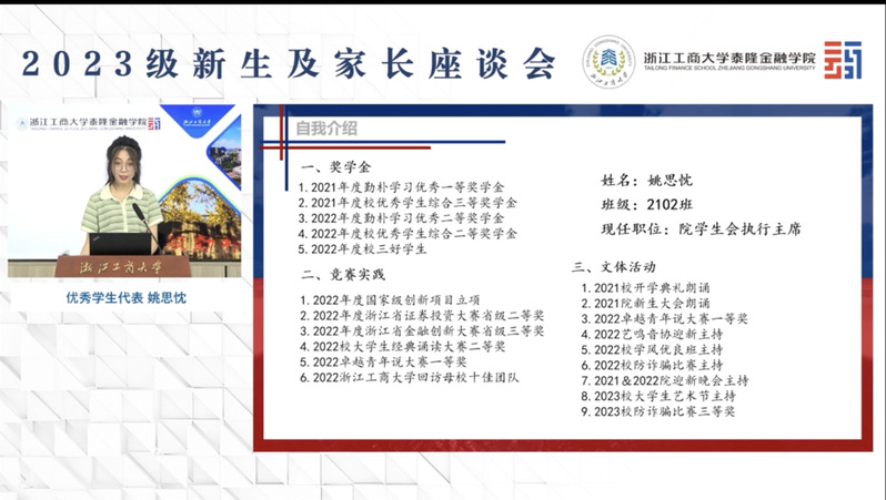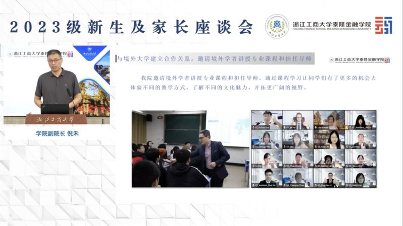 8月20日上午,韩国h漫 召开了2023级新生及家长座谈会。本次会议采用线上直播形式开展。学院院长马丹,书记慕兴宏,副院长、泰隆银行经管会委员汤筱晓,副院长倪禾,副书记姜兵,院长助理傅利福,新生辅导员王寿铭,优秀学生代表姚思忱以及2023级全体新生及家长共同参加。会议由王寿铭老师主持。