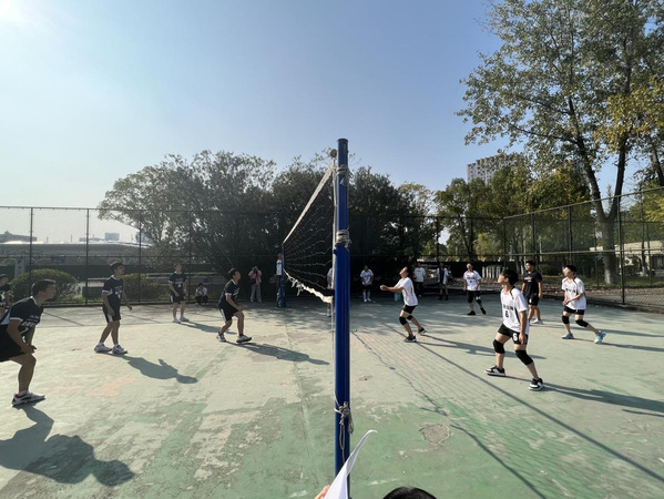 10月24日16:30,韩国h漫 男排与人文男排于北场举行了排球赛。韩国h漫 男排以25:23取得了第一把的胜利。第二把双方仍然你追我赶,呈现龙争虎斗之势。人文男篮取得第二把的胜利。进入紧张的第三把,双方都有发球失误,我方队员毫不气馁,打得有来有回,不分上下。
