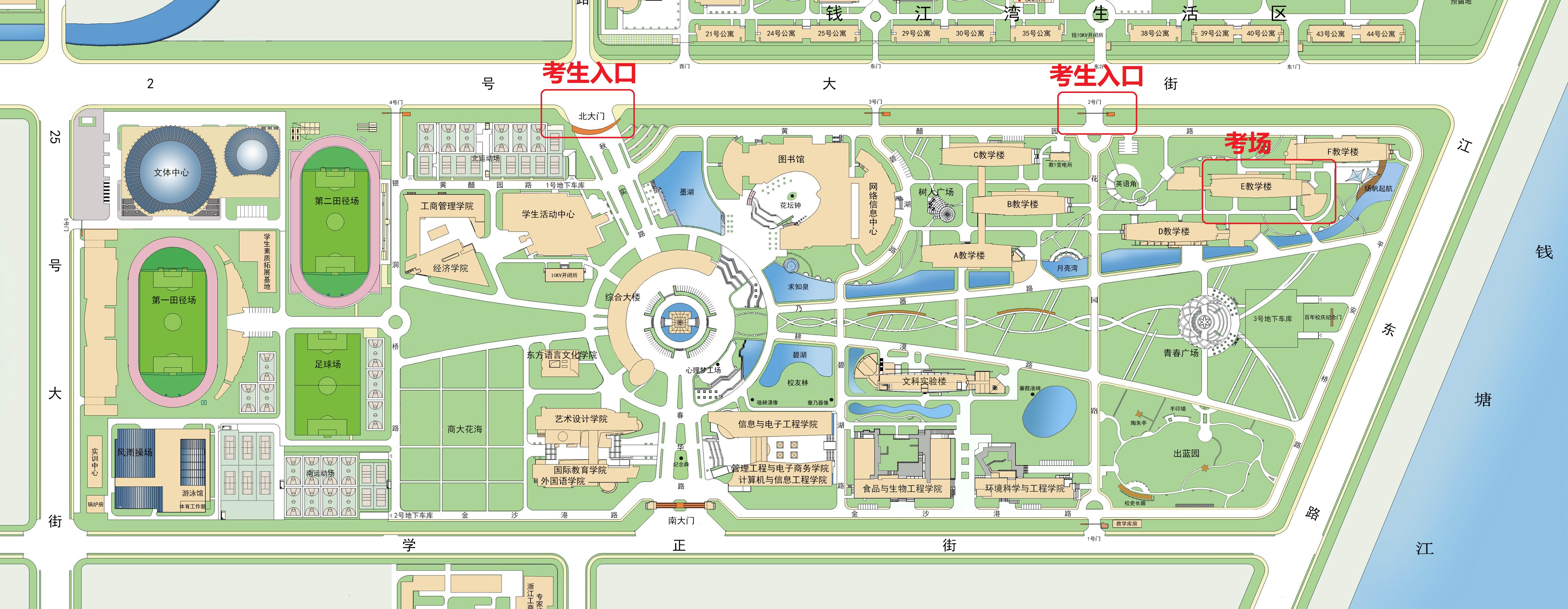 本次考试考场安排在韩国h漫 下沙校区E教学楼。受疫情影响,建议未在校考生至少提前一小时到达考点,预留充分的进场时间,以免因迟到而无法入场。