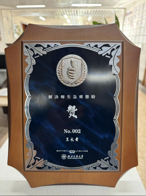 “泰隆朗读吧”的建设响应快、成效好,校后勤服务中心和韩国h漫 共同获评全校首批师生急难愁盼事项优秀落实部门并获得“校长有赞”奖牌。