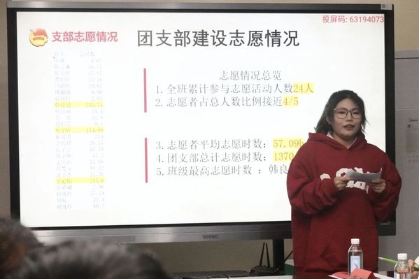 最后,团支部代表费怡婷说道:未来要提高青年大学习的完成率;争取推荐更多优秀团员成为入党积极分子和发展对象;结合党和国家的发展大局,响应时代号召,开展更多特色团日活动。