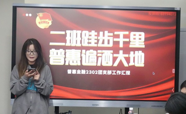 普惠金融2302团支部从支部基本概述、思想工作总结、实践工作总结、未来工作展望四个方面进行了分享。2302团支部重视开展支部活动,每次团课、团日活动开展前,班委们都会共同讨论,集思广益为支部活动贡献力量。同时,他们重视成员精神建设,围绕“智慧团建”“青年大学习”和“特色团课”三种方式开展了各种思想教育活动。