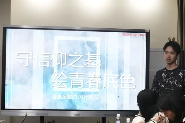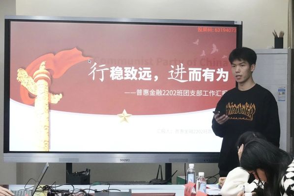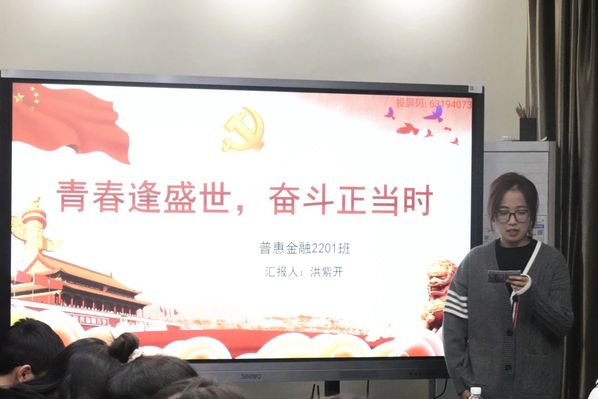 普惠金融2103团支部从常规工作回顾、主题团日学习、工作成果展示、未来美好展望四个方面进行了介绍。2103团支部委员以及班干部一起,积极开展推进了日常班级建设活动,坚持做好本职工作,将日常的学习工作落到实处;积极将每月的日常团课落实到位,积极组织班级入党入团推优大会,参与学院入党入团推优;开展了各种创新主题团课,帮助同学们提高思想觉悟,在学业情况、竞赛成绩、社会实践方面都有突出表现。