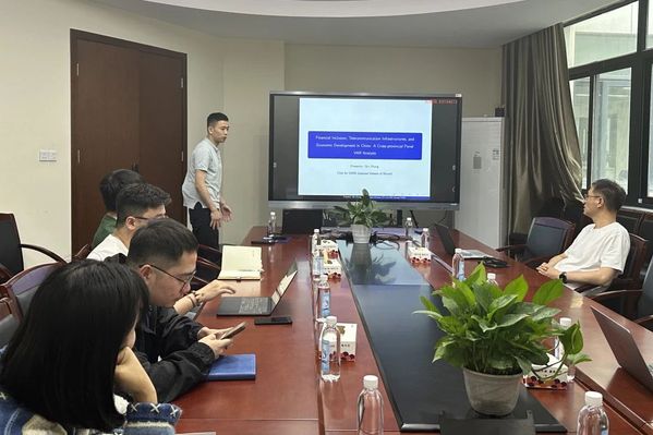 张秦博士首先汇报了最新的工作论文,文章通过调查2011年至2020年,中国31个省的普惠金融、电信基础设施和经济增长之间的时间动态和三向性影响。采用了面板VAR模型捕获相互依赖性和动态模式,该模型评估了一个正交激波从一个变量到整个系统随时间变化的轨迹。实证结果表明:第一,提升信息和通信技术基础设施水平对普惠金融和经济增长都有积极的影响;第二,更大程度的普惠金融也会促进信息和通信技术提升和经济增长;第三,这些增长刺激在短期内较为明显,长期并不显著,这表明影响系统的冲击是暂时性的;第四,区域异质性显示,财政发展水平较低的西部省份从ICT基础设施中受益更多,而财政发展水平较高的东部省份从普惠金融发展中受益更多。