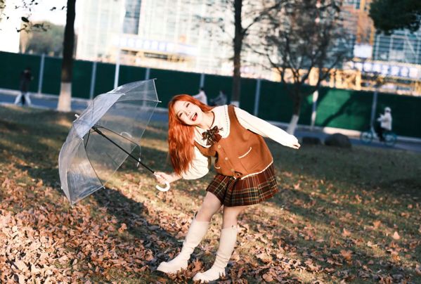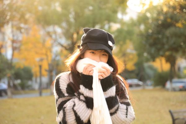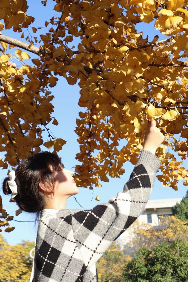 十一月的银杏纷纷扬扬,在阳光映衬下闪着金光。面对镜头,女孩含蓄地似笑非笑,温暖了整个秋日。