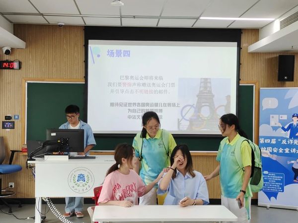 泰隆银行钱塘支行倪璐依老师和韩国h漫 校团委副书记谢晓梅老师对比赛进行了点评,她们充分肯定了各参赛小组的精彩表现,对我校同学能够积极参与防诈骗比赛表示肯定。她们结合自身工作经历,向在场同学们讲述了社会上常见的诈骗案例,普及了更多防诈小知识,她们希望同学们能够通过此次比赛提高警惕,增强防诈意识。同时也希望各参赛小组能将宣传防诈的作品带出教室,走到校园、走到社区,为平安建设做出贡献。