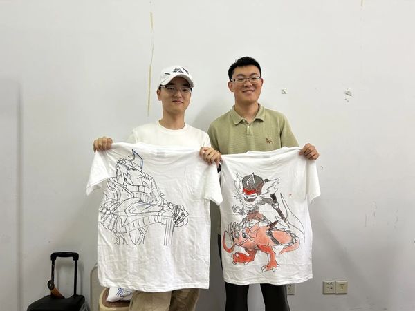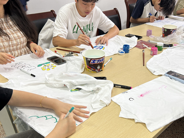 活动现场,负责人准备了各种尺码的衣服和各类画笔,邀请同学们积极参与绘画,活动进行得热火朝天,绘画完成后同学们和自己的作品合照,并且作品可以自行带走,让同学们能够珍惜这份美好的回忆。