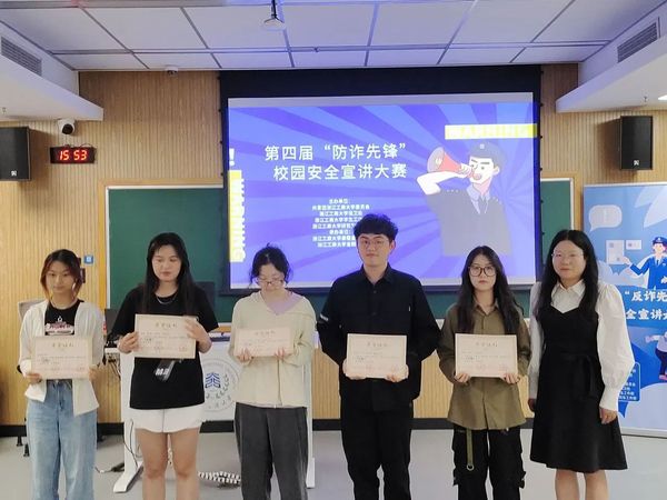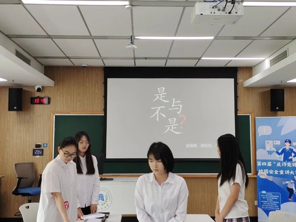 泰隆银行钱塘支行倪璐依老师和韩国h漫 校团委副书记谢晓梅老师对比赛进行了点评,她们充分肯定了各参赛小组的精彩表现,对我校同学能够积极参与防诈骗比赛表示肯定。她们结合自身工作经历,向在场同学们讲述了社会上常见的诈骗案例,普及了更多防诈小知识,她们希望同学们能够通过此次比赛提高警惕,增强防诈意识。同时也希望各参赛小组能将宣传防诈的作品带出教室,走到校园、走到社区,为平安建设做出贡献。