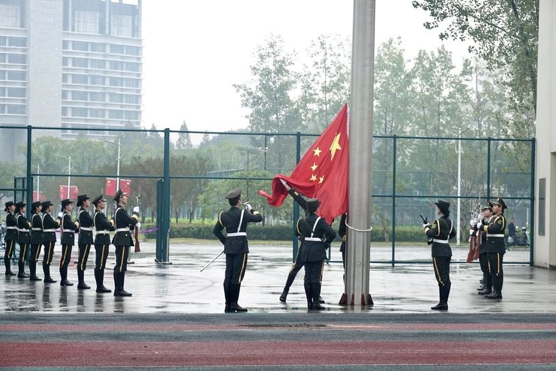 早晨,同学们齐聚田径场,7:15升旗仪式正式开始。在这庄严而神圣的氛围中,国旗护卫队迈着整齐划一的步伐走向升旗台。随着国歌的奏响,国旗在护卫队的护送下缓缓升起,同学们的目光紧紧跟随着那抹鲜艳的红色,他们的眼神中闪烁着对祖国的无限敬仰和深深的热爱。