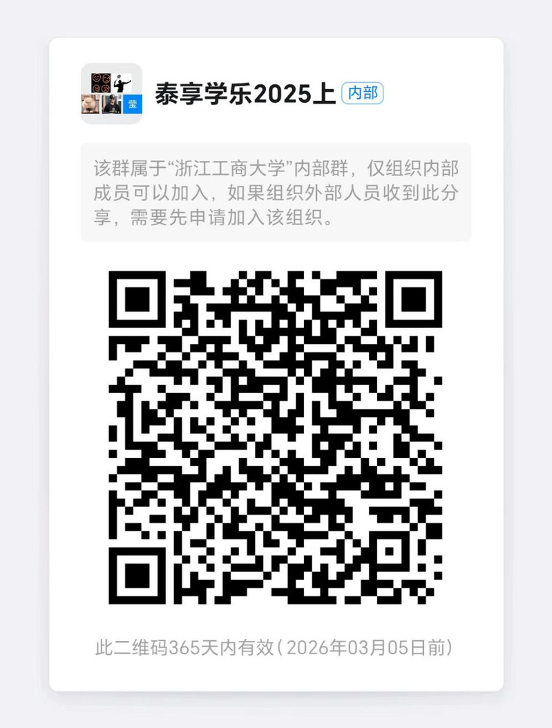 (1)已有意愿伙伴的同学,可以和满足相关参与条件的伙伴自由组合成学习互助小组,然后由在小组中担任助力团成员的同学扫描下方问卷星进行报名。请已填好问卷星报名的小组扫描下方钉钉群二维码加入“泰享学乐”学习互助小组钉钉联络群。