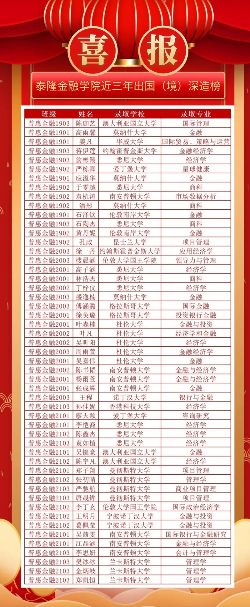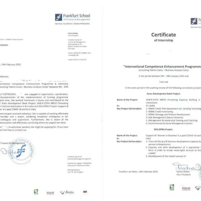2022年暑假组织同学参与了香港中文大学在线学术课程。2023年寒假组织学生参加德国法兰克福财经管理大学ICEP项目、香港中文大学官方在线学术课程项目、新加坡星展银行金融实训项目。