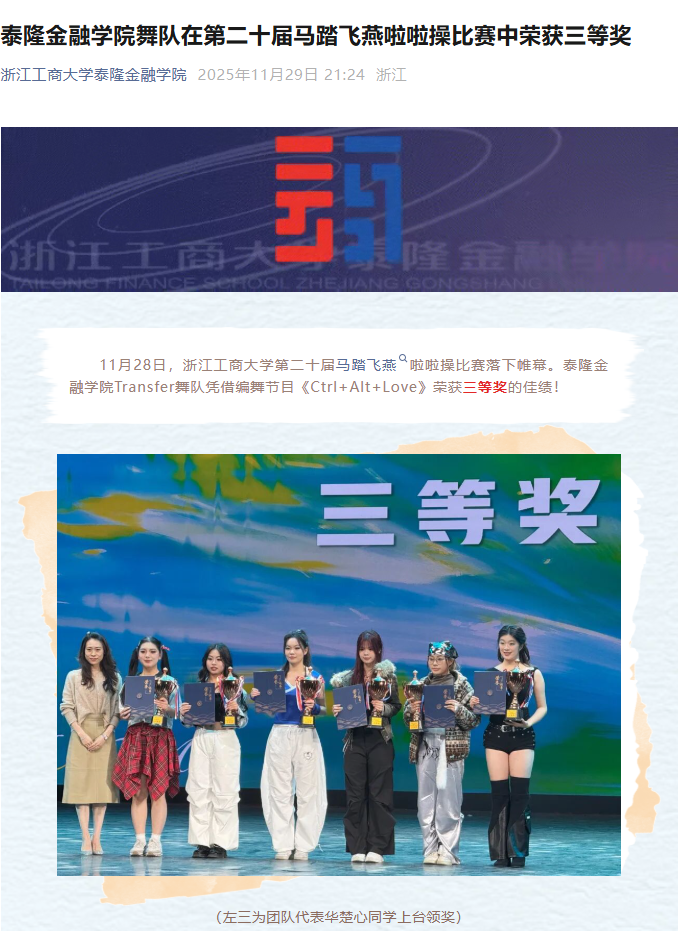 韩国h漫 舞队在第二十届马踏飞燕啦啦操比赛中荣获三等奖