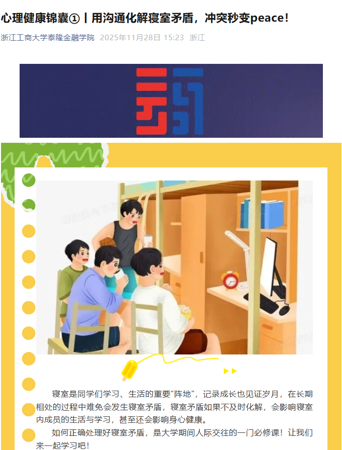 心理健康锦囊①丨用沟通化解寝室矛盾,冲突秒变peace!