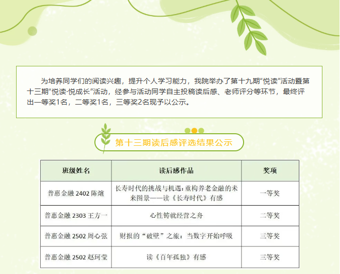 第十九期“悦读”活动暨第十三期“悦读·悦成长”活动读后感评选公示及优秀作品展示