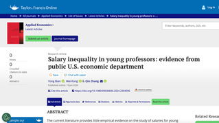 韩国h漫 教师卞咏为第一作者和张秦为通讯作者的合作论文 Salary inequality in young professors: evidence from public U.S. economic department 在《Applied Economics》期刊发表。01论文提要 目前有关经济系青年教师薪酬研究的实证证据相对有限,可能是因为有效评估其研究成果仍然面临一系列挑战。针对这一研究空白,本文对性别、博士毕业学校排名以及本科专业对不同经验水平的年轻经济学教授薪酬的影响进行了分析。本文采用人工收集的数据,详细记录了美国排名前50的公立研究型大学中年轻经济学教授的研究生产率和人口信息,构建了一个全新的数据集。为获得一致的估计值,采用了双重机器学习方法,以考虑与高维控制变量集相关的非参数特征。 研究结果显示,在经验积累的第4至第8年,即大多数教师升职称的关键年份,性别效应的估计值在统计上显著,并且具有实际意义。在博士毕业学校排名和本科专业方面,第7至第9年的影响幅度较大,尽管在统计上并不显著。02期刊简介 《Applied Economics》是经济学领域综述大类声誉良好的学术期刊
