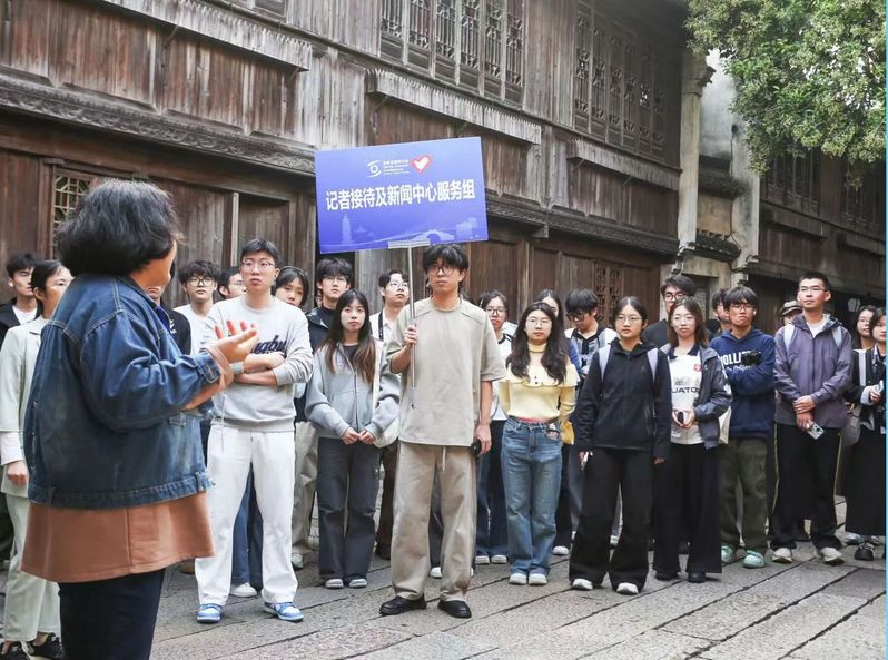 倪:有!在南栅服务点时,一位外媒记者很着急地想找一个有特色的老作坊进行拍摄。虽然我听懂了他的需求,但一时有点卡壳,不知如何精准描述“蓝印作坊”。情急之下,我一边说“blue cloth, traditional pattern”,一边用手在自己衣服上比划着花纹。他一下就懂了,笑着连说“Yes, that's it!”。那一刻真的松了口气,也深深觉得,有时真诚的肢体语言和愿意沟通的心,比完美的语法更重要。